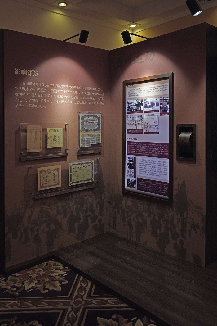 展览共分三个单元,通过图文版面、馆藏股票,辅以实物模型、漫画场景,讲述第一张红色股票与上海早期工人运动发展壮大的故事。