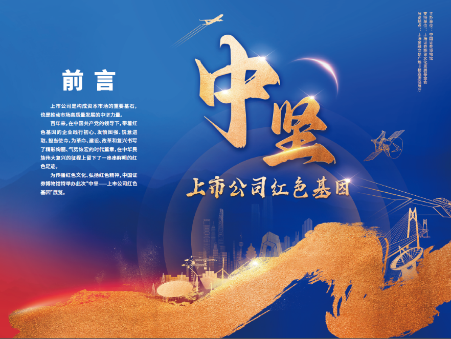 为贯彻落实习近平新时代中国特色社会主义思想主题教育工作,宣传党的二十大精神,传承资本市场红色基因,4月28日,上海证券期货文化发展基金会支持中国证券博物馆在上海金融交易广场8楼连廊临展厅推出“中坚——上市公司红色基因展”。展览通过挖掘上市公司背后的红色故事和感人事迹,进一步彰显上市公司在中国共产党领导下实现的跨越式发展。